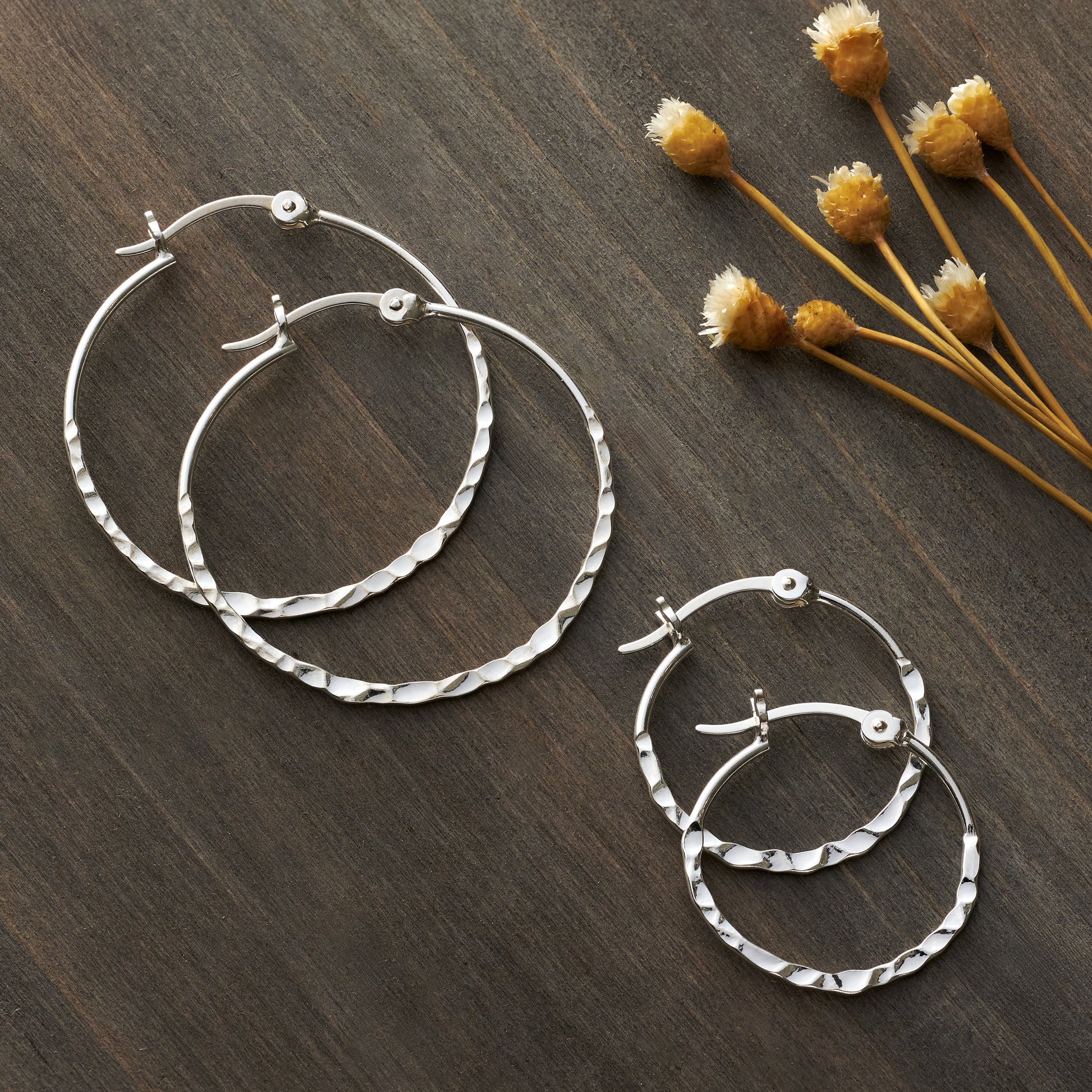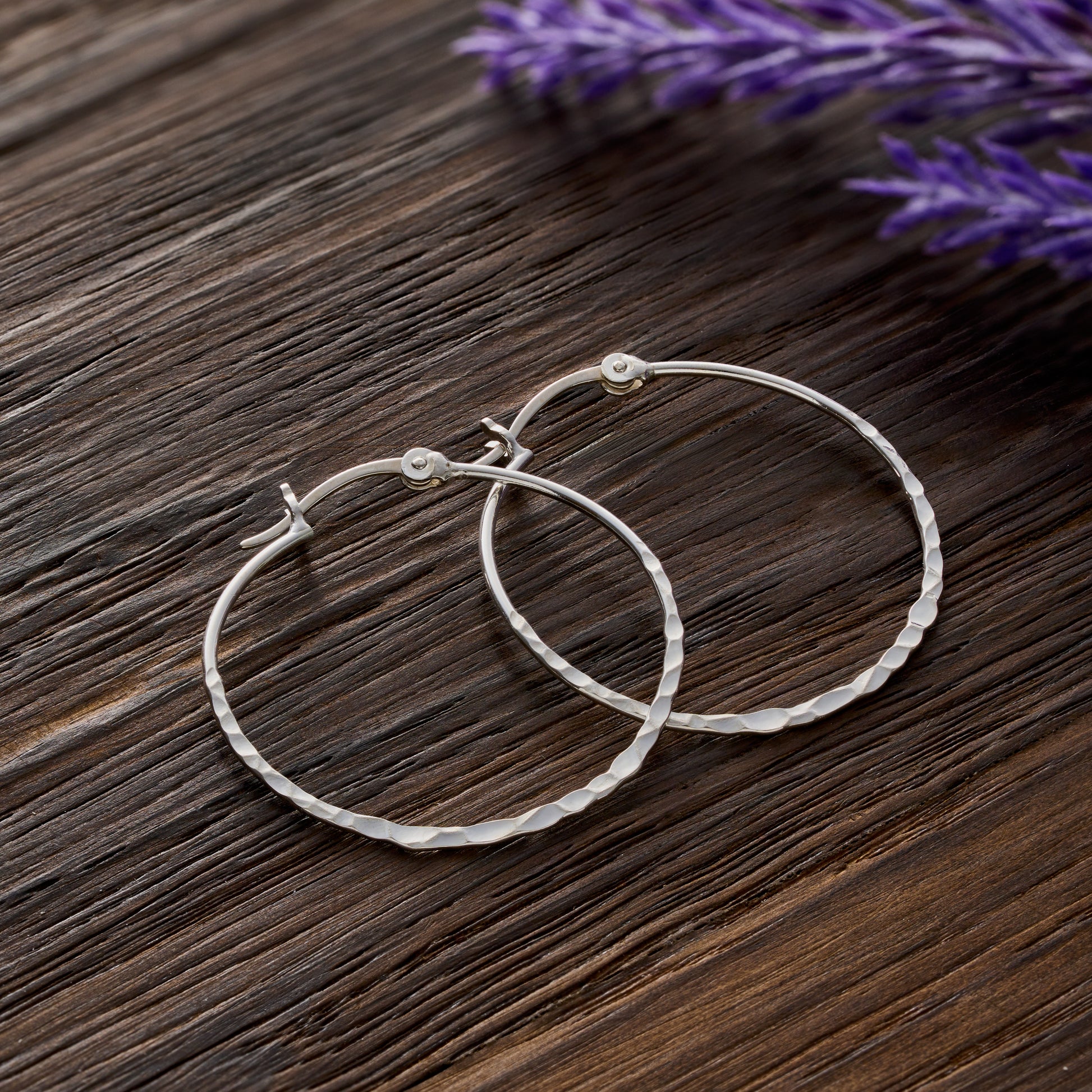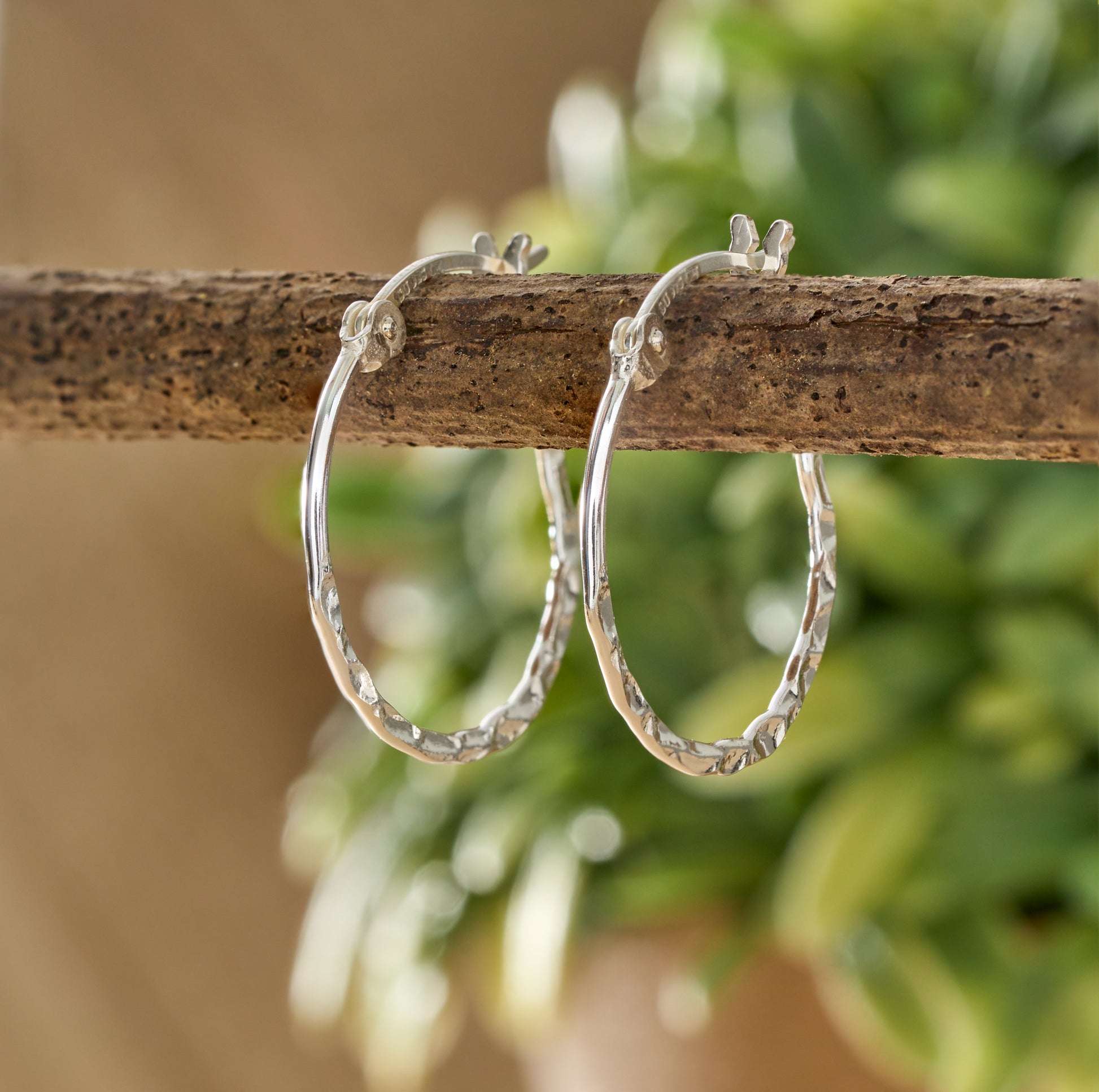 Elegant and stylish, the Sterling Silver Hammered Hoop Earrings have become a natural classic.