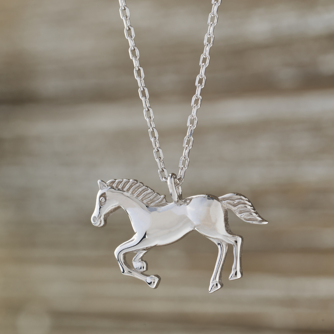 Stunning and refined, the Sterling Silver Galloping Horse Necklace elegantly captures the spirit of one of the world’s finest creatures.