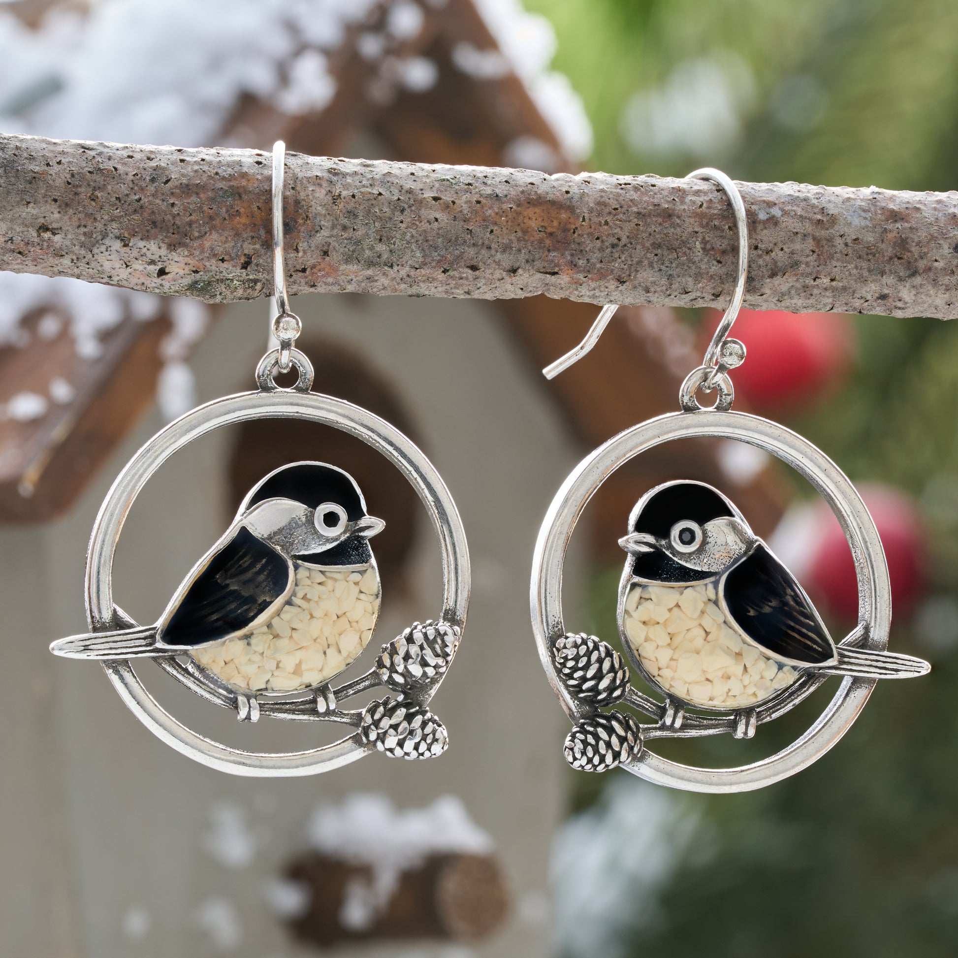 Chickadee Pine Branch Gift Set with French Hooks