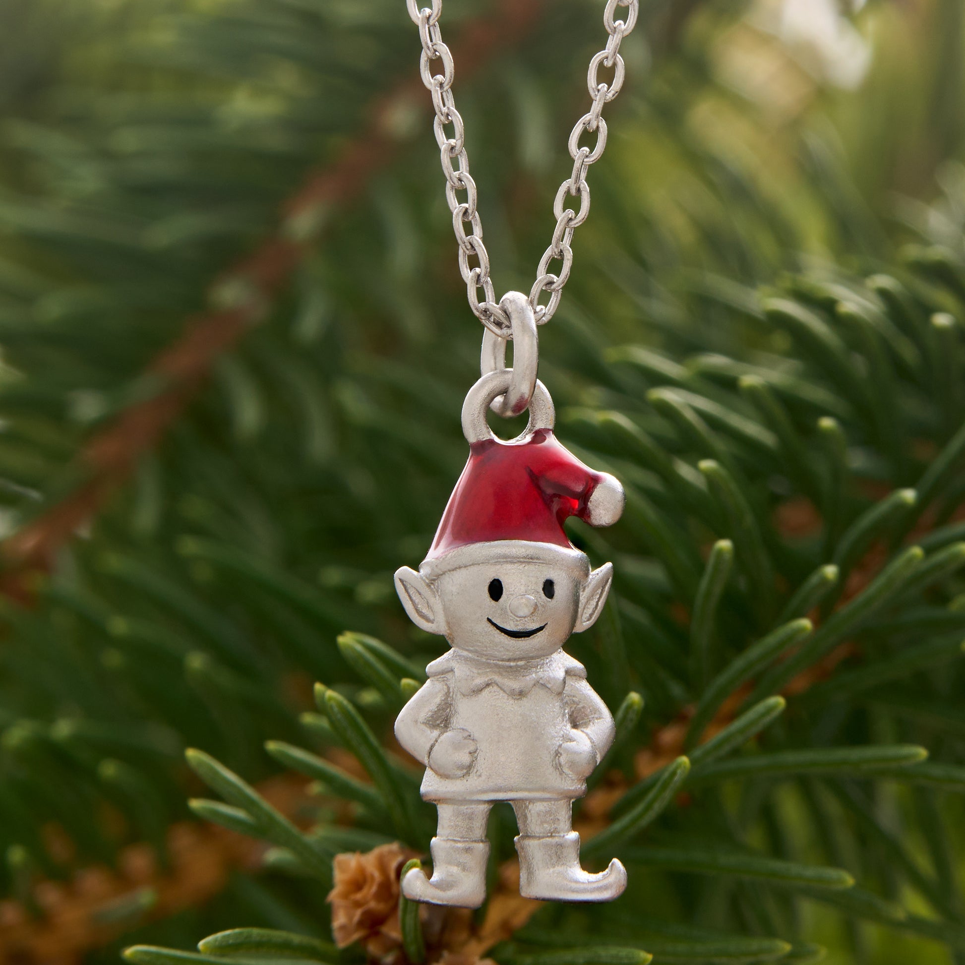 This coordinated set includes both the Dainty Red Hat Elf Necklace and matching Leverback Earrings—each handcrafted from brass and finished in matte silver plating for a soft sheen. The delicate elf silhouettes are accented with bright red enamel hats, adding a cheerful pop of color that captures the warmth and joy of the holiday season. Lightweight and comfortable, both pieces pair timeless elegance with a hint of festive fantasy, perfect for everyday wear or as a thoughtful seasonal gift.