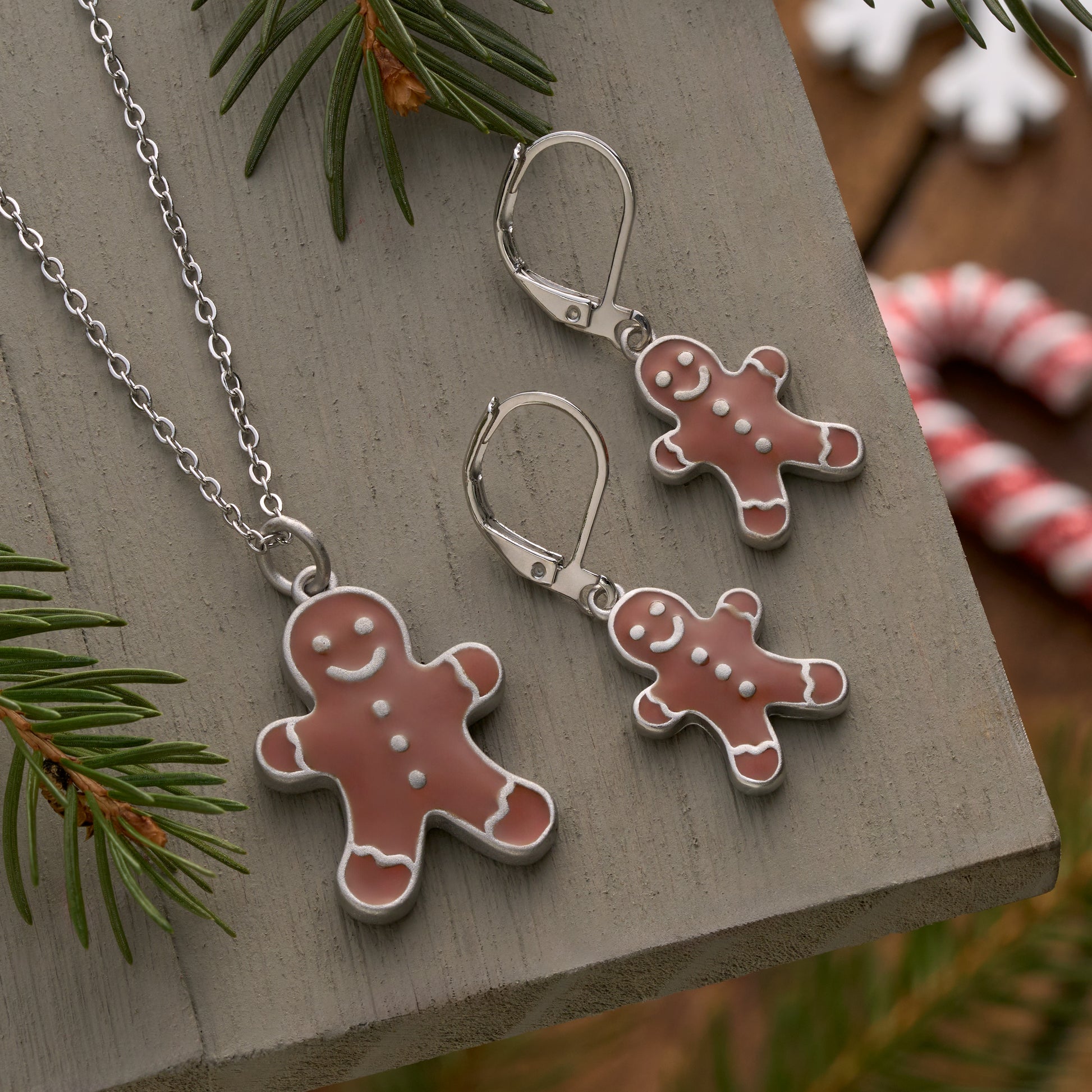 Sweet and festive, the Enamel Gingerbread Man Gift Set pairs two coordinating pieces—a matching necklace and leverback earrings—each handcrafted to capture the cheerful spirit of the holidays.