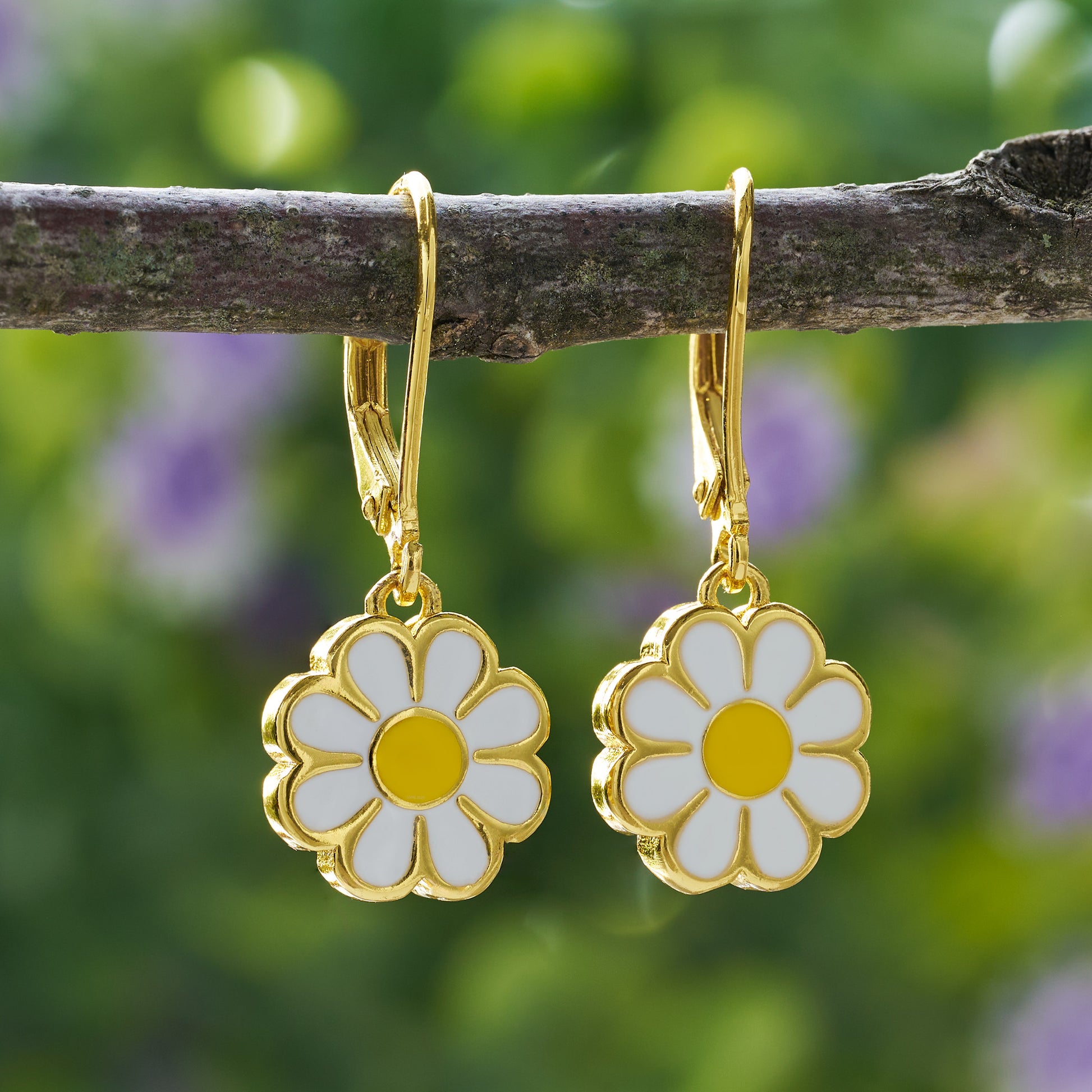 Inspired by the blooming hillsides of Chadds Ford, Pennsylvania, these handmade earrings feature double-sided 11mm daisy charms, crafted in brass and plated in luminous 18K gold. Solid sterling silver leverbacks ensure comfort for sensitive ears—lightweight, hypoallergenic, and nickel-free for effortless wear from day to night.