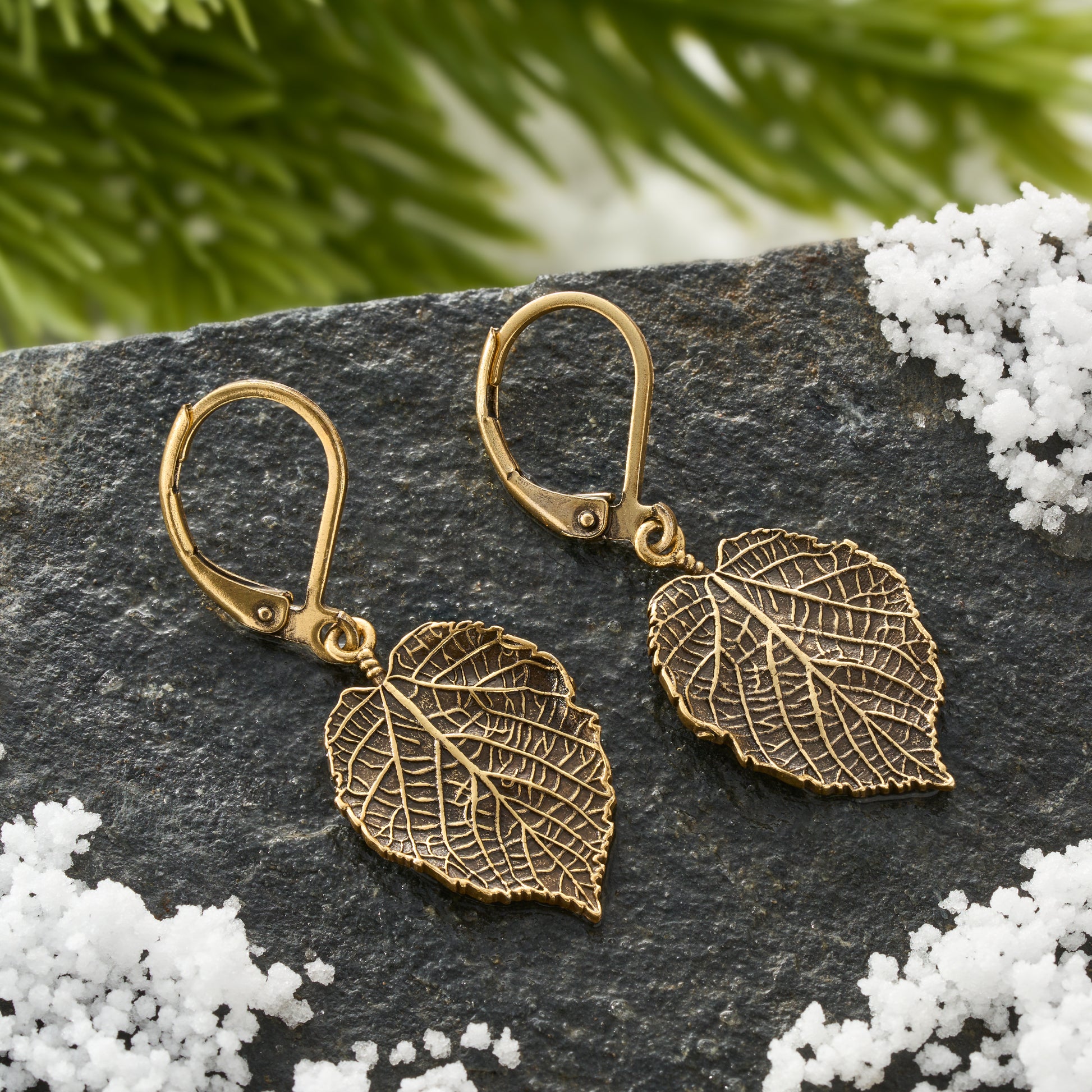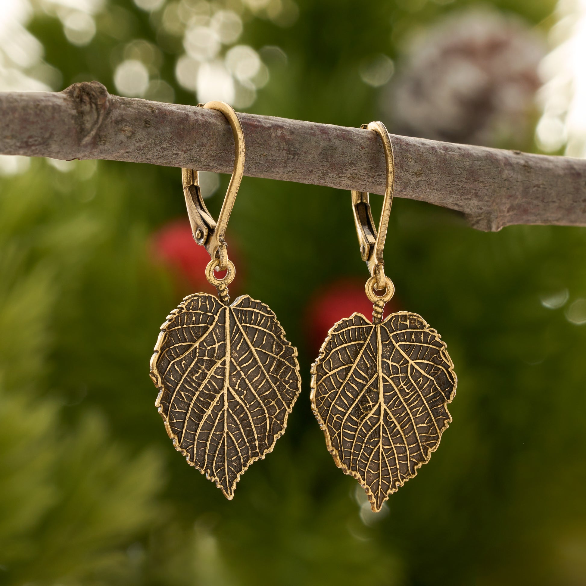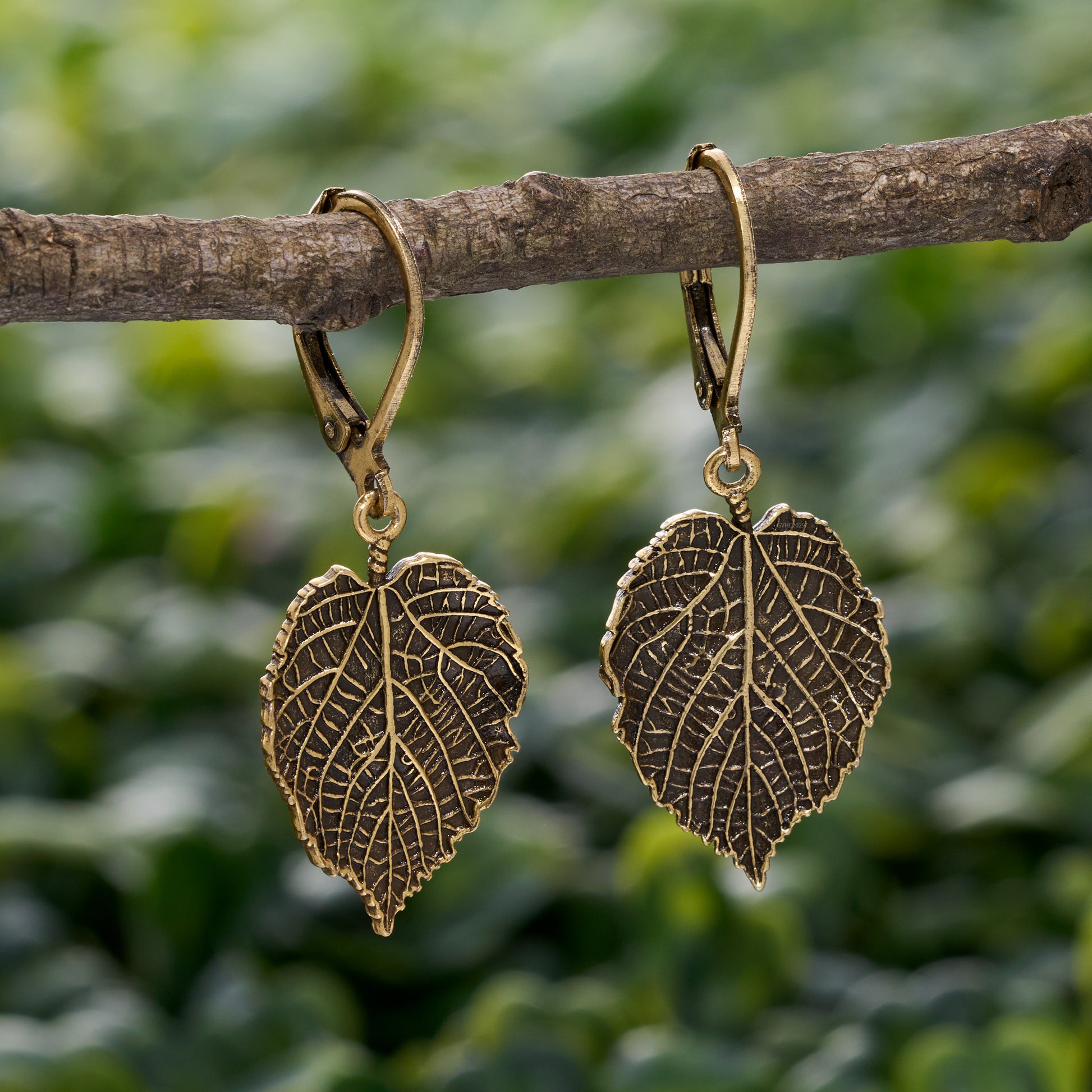 Gold Leverback Vintage Birch Leaf Earrings