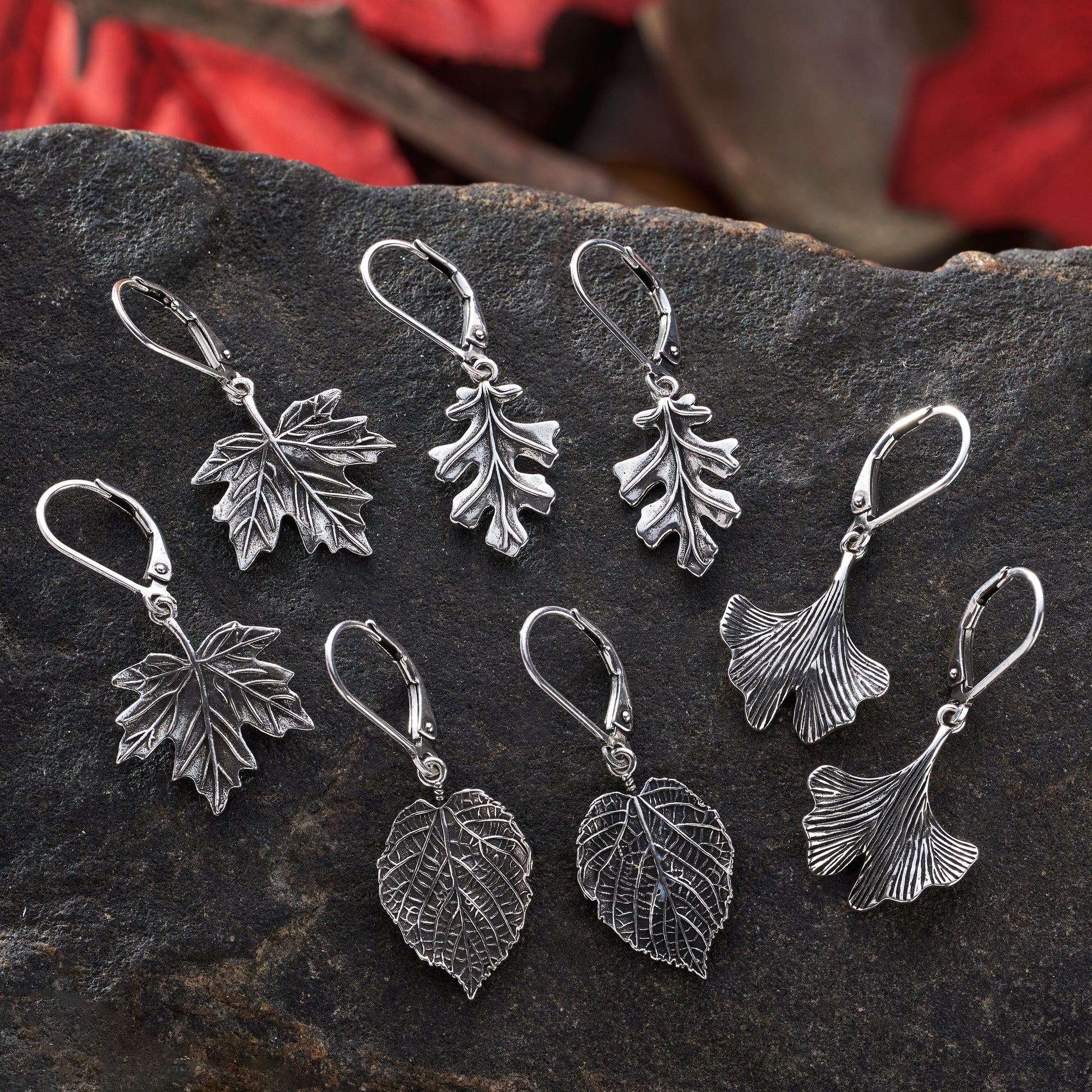 Showcasing maple, oak, paper birch, and gingko designs, these stunning earrings can be paired with a number of nature-inspired pieces, are appropriate for both casual and professional settings, and make an excellent gift.