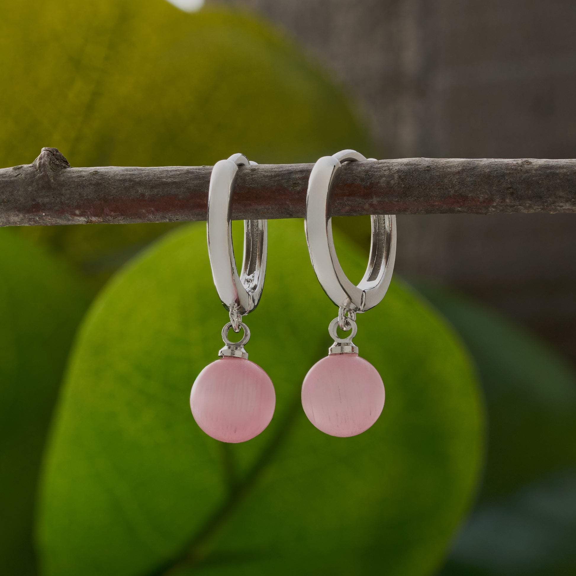 Eye-catching and elegant, the Pink Cat's Eye Hoop Earrings are sure to delight!