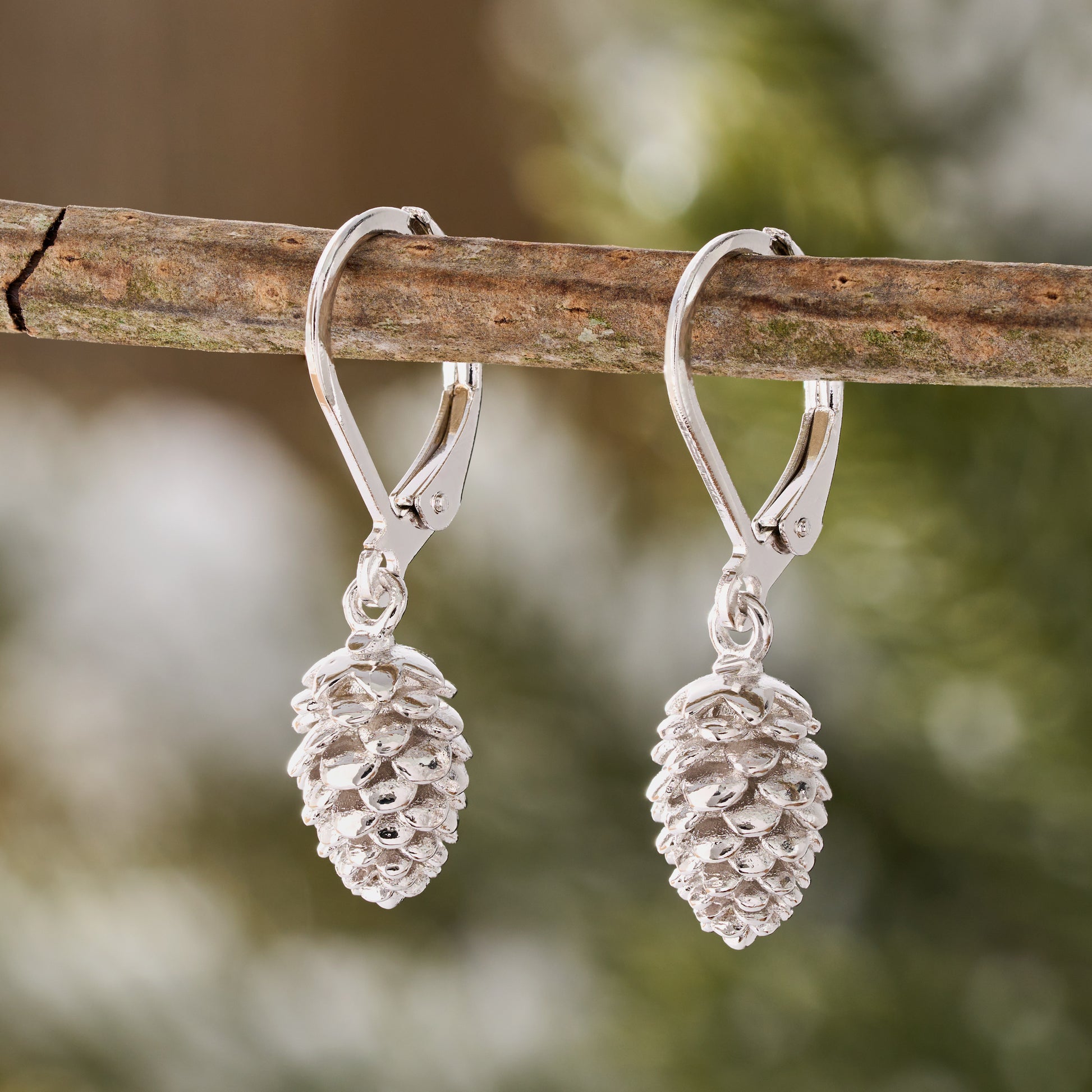 Stunning and refined, the Rhodium Leverback Pine Cone Earrings elegantly capture the spirit of the great outdoors.
