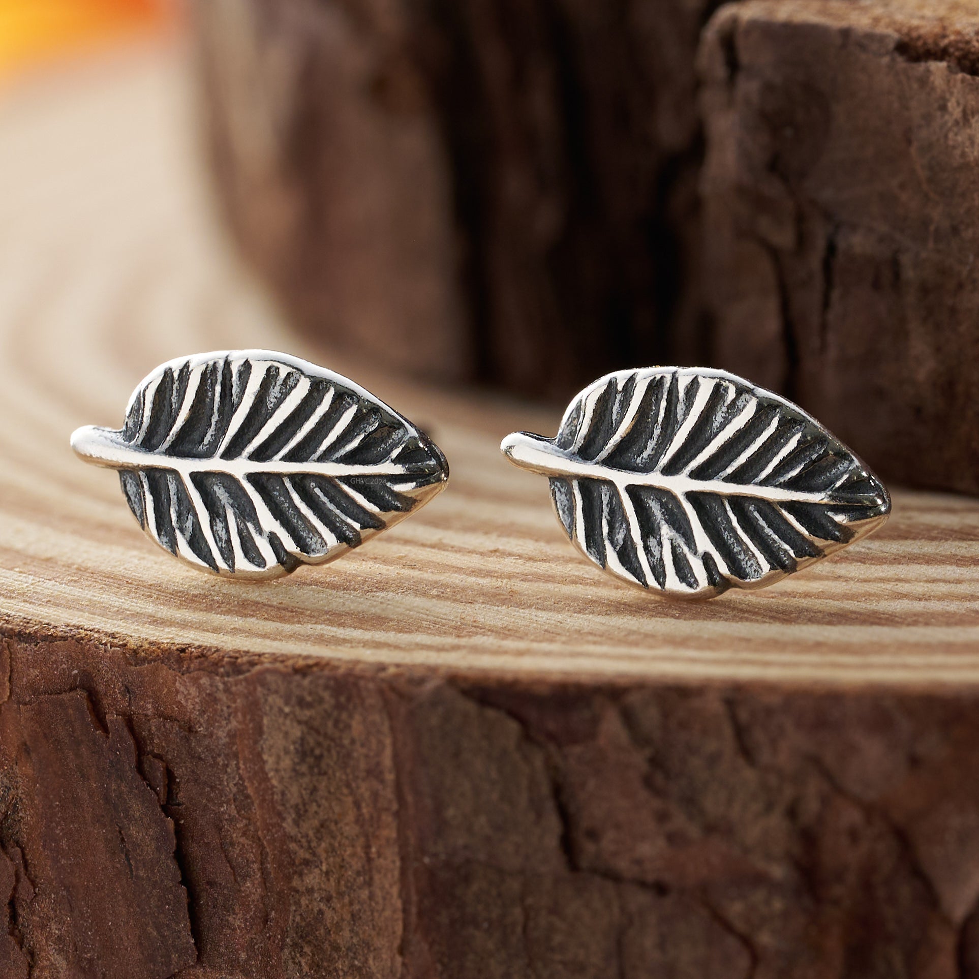 Eye-catching and elegant, the Sterling Silver American Beech Leaf Studs - Medium are perfect for fall!