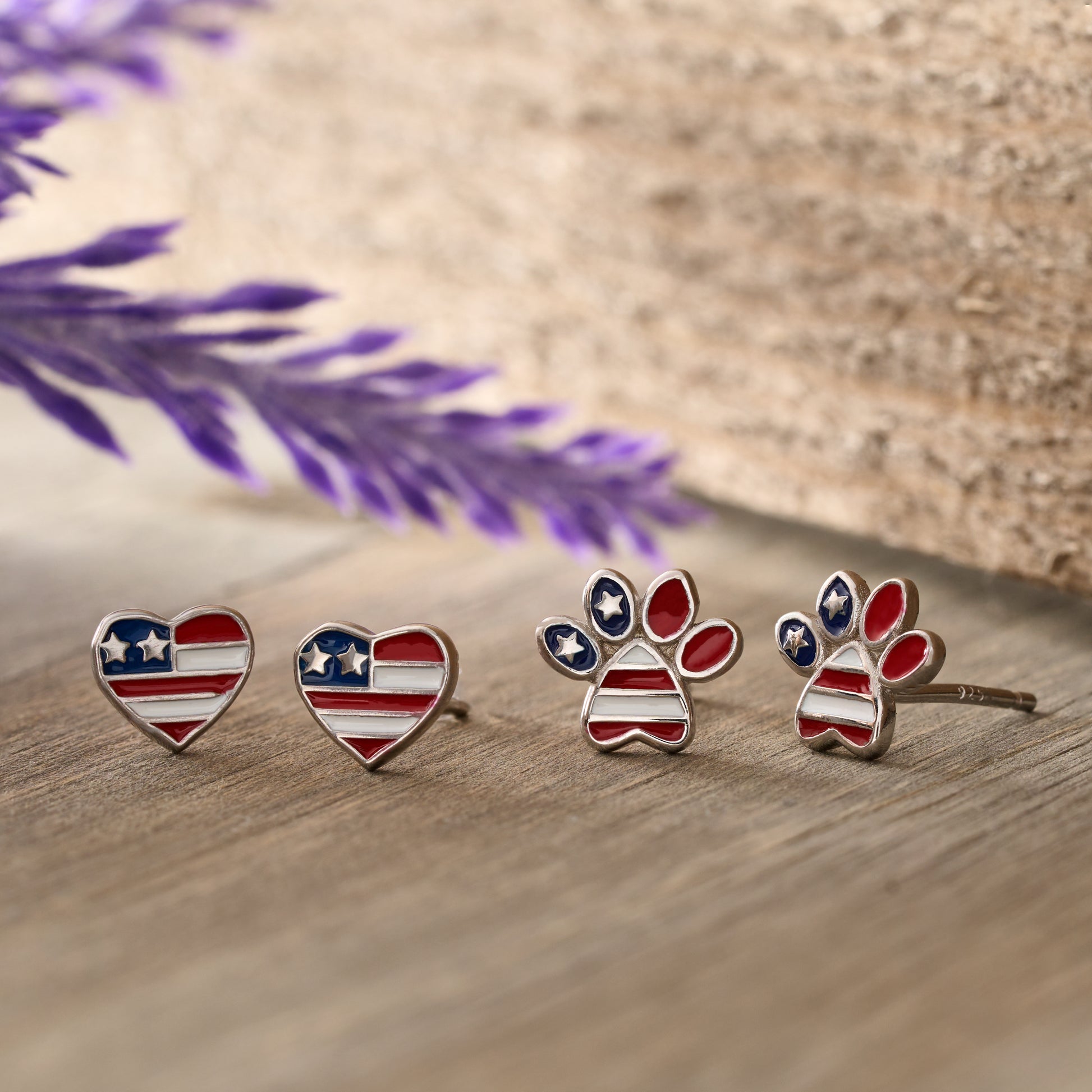 Charming and meaningful, the Sterling Silver American Flag Studs and the Sterling Silver American Flag Dog Paw Studs perfectly capture the American spirit!