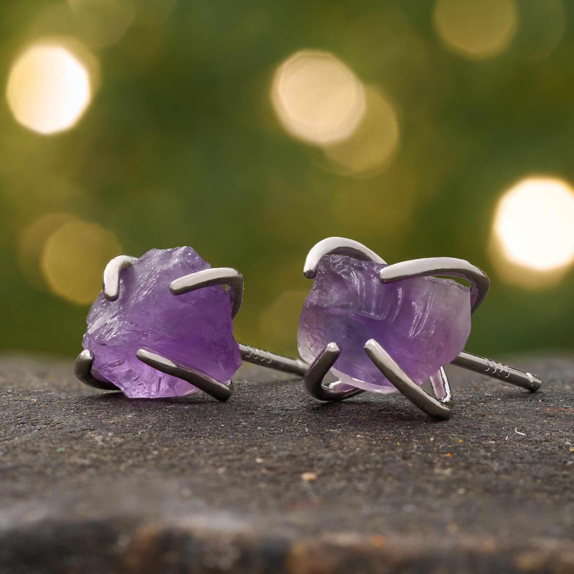 Showcasing sterling silver and genuine amethyst, these beautiful stud earrings can be paired with a number of nature-inspired pieces, are appropriate for both casual and professional settings, and make an excellent gift.