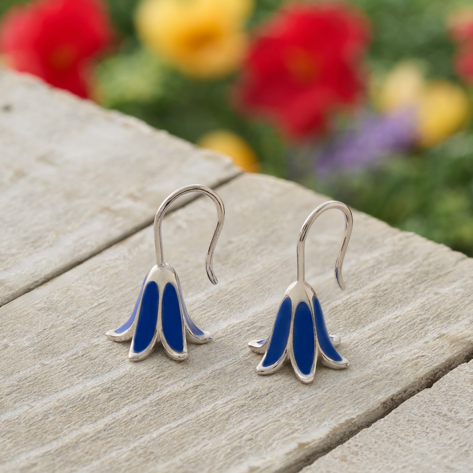 Delicate and charming, the Sterling Silver Dainty Bluebell Earrings capture the essence of spring with their brilliant blue enamel and graceful floral form.