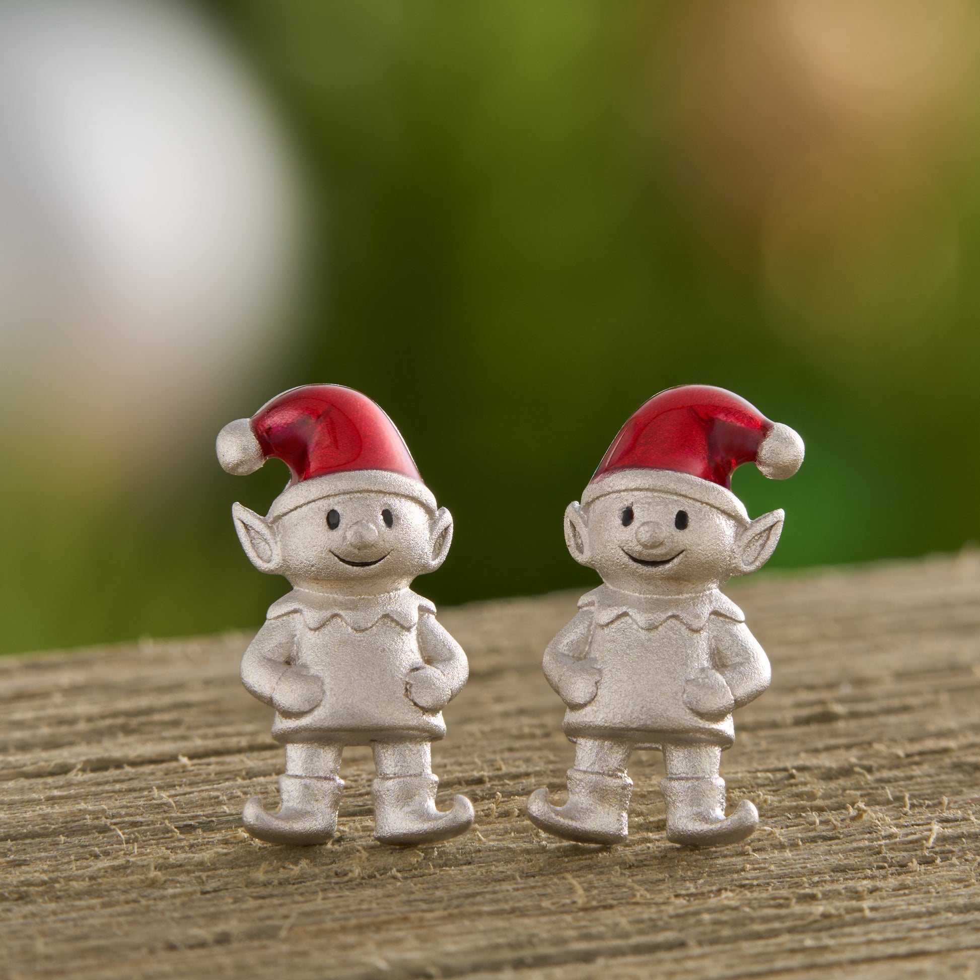 Handcrafted from solid sterling silver and finished in matte silver plating for a soft sheen, these 12mm x 6mm studs feature a charming elf silhouette accented by a bright red enamel hat—a cheerful detail that captures the spirit and joy of the season. Lightweight and perfectly sized for daily wear, they balance timeless elegance with festive charm. Crafted with sterling silver posts and butterfly backings, they’re comfortable, hypoallergenic, and made to last.