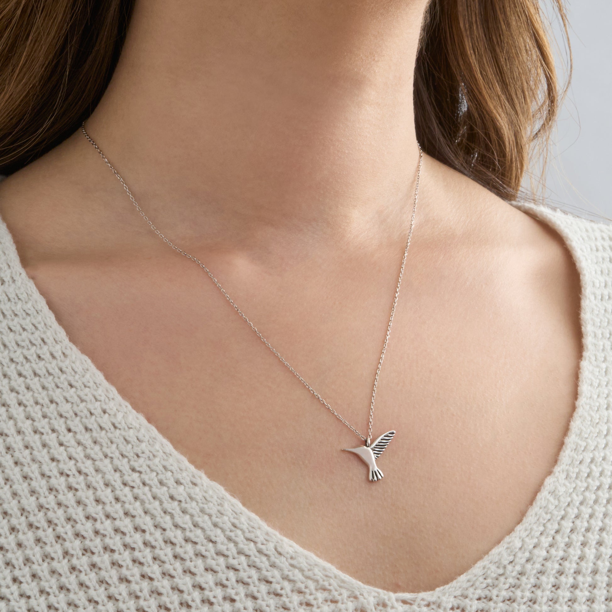 Featuring a 3D hummingbird pendant plated in rhodium, this delightful necklace is paired with a rhodium-plated sterling silver chain for lasting shine and durability. Its nature-loving charm and mixed-metal finish make it an easy match for a variety of other jewelry styles, from polished to earthy.