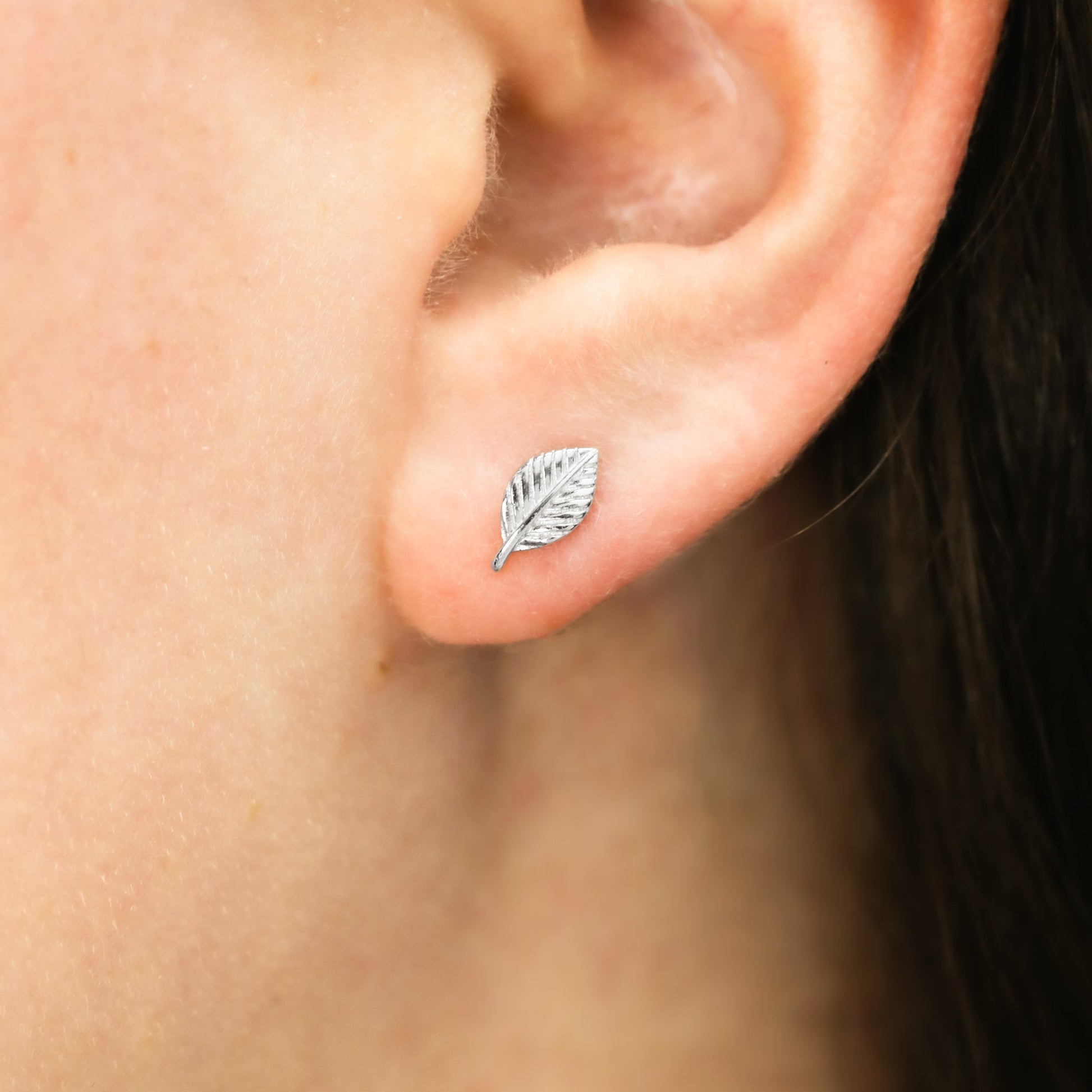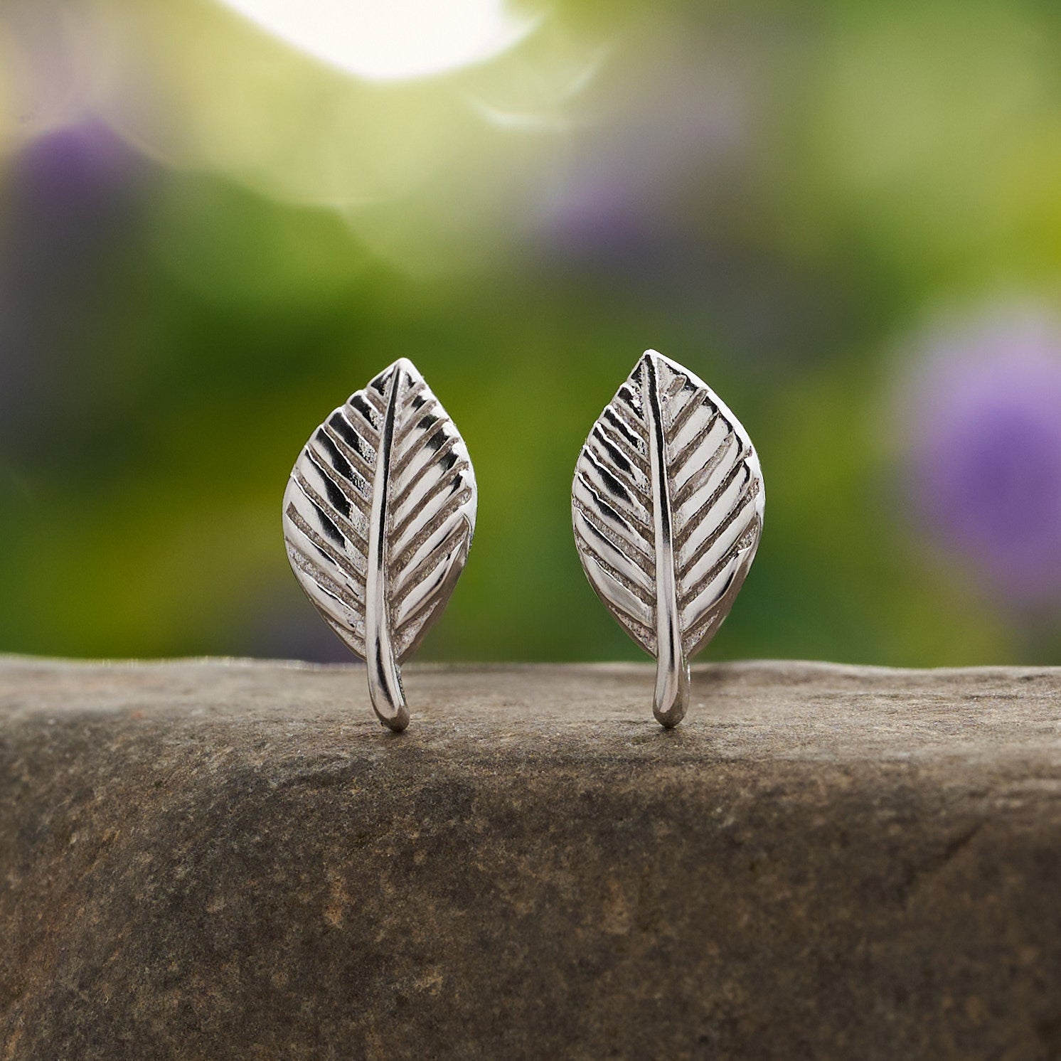 The delicate and artistic Sterling Silver Leaf Studs can be paired with any outfit as a stylish and memorable nature-inspired accent.