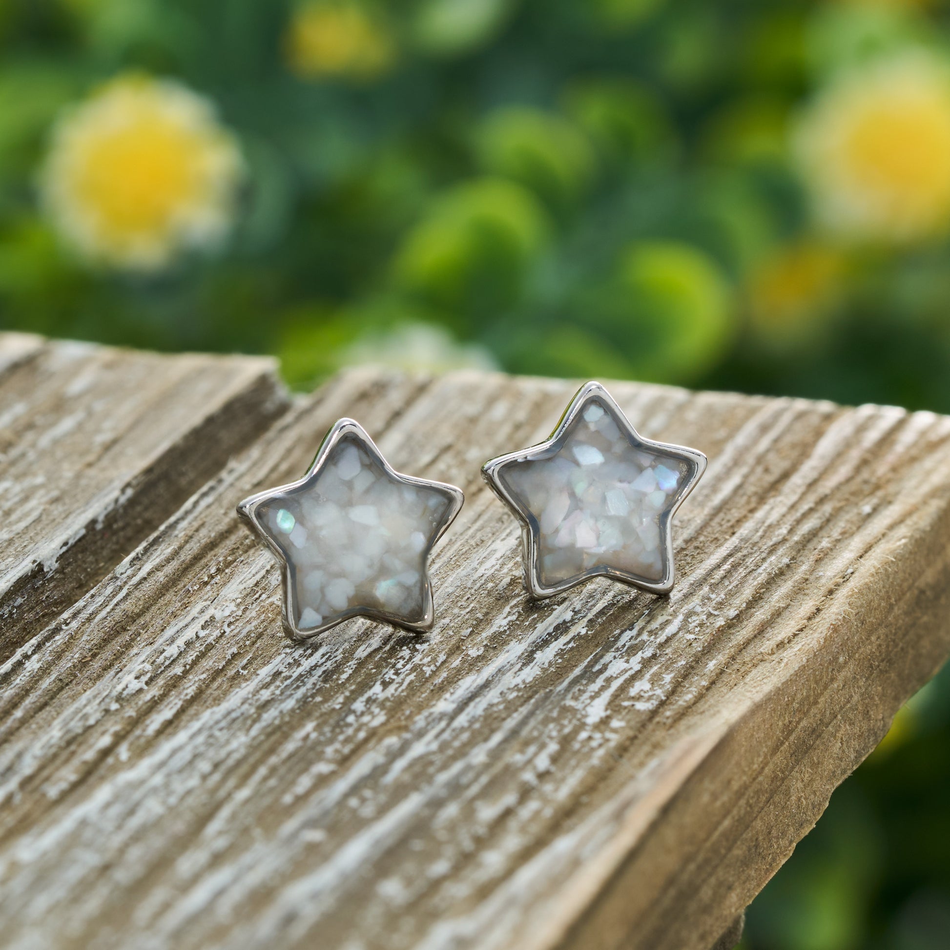 Elegant and stylish, the Sterling Silver Mother of Pearl Star Studs have quickly become a must-have pair of earrings.
