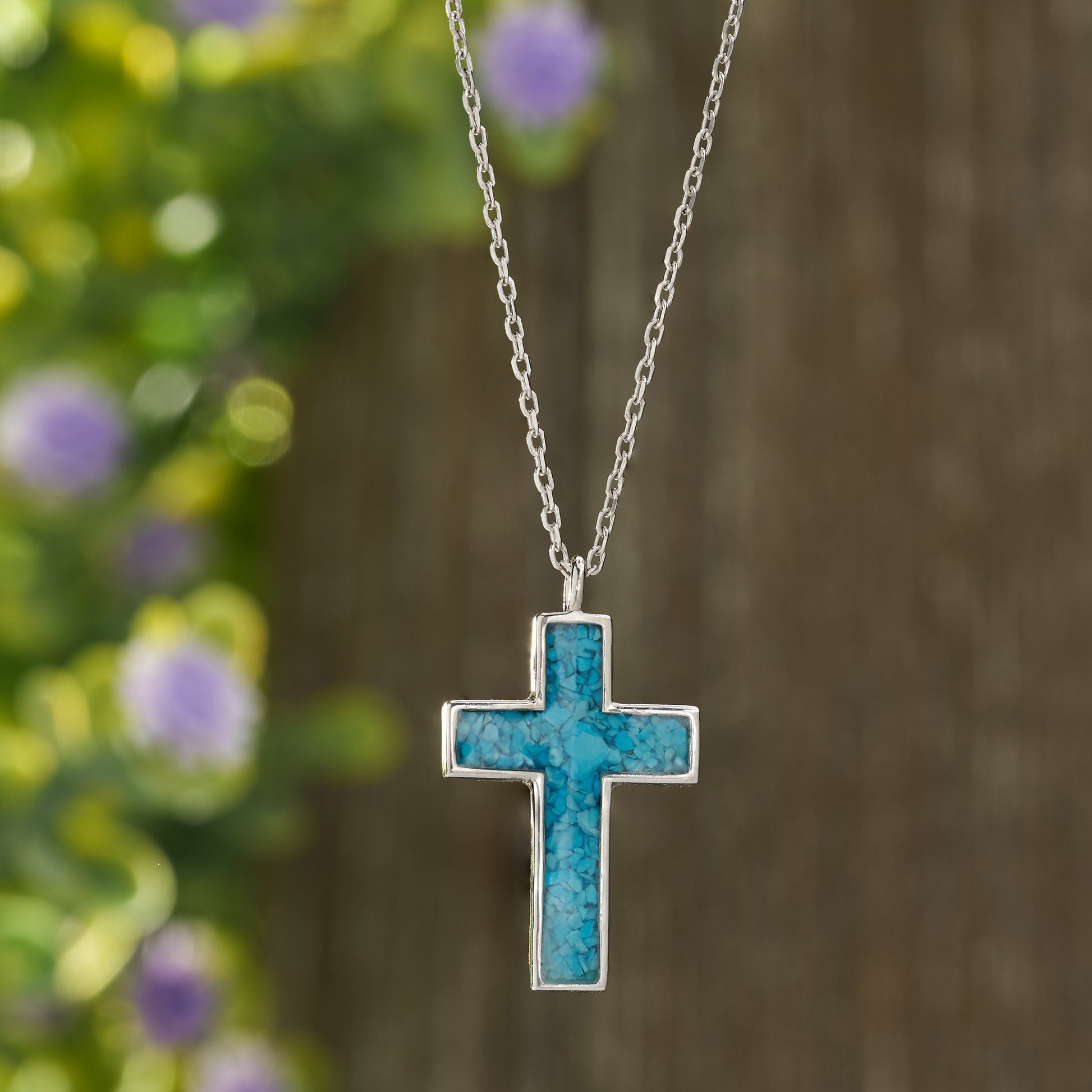 Blending simplicity and elegance, the Sterling Silver Turquoise Cross Necklace is a lovely expression of faith.