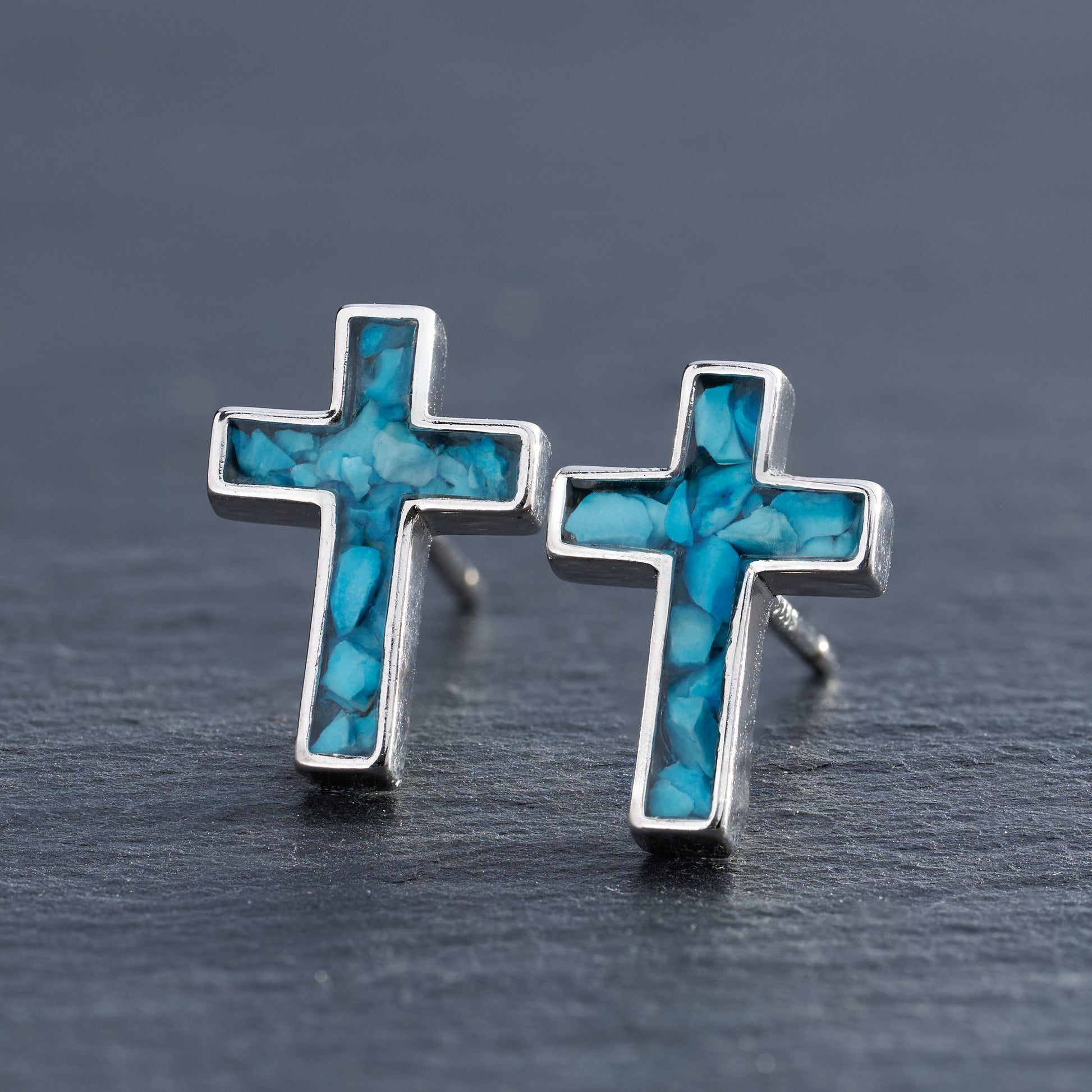 Blending simplicity and elegance, the Sterling Silver Turquoise Cross Studs are a lovely expression of faith.