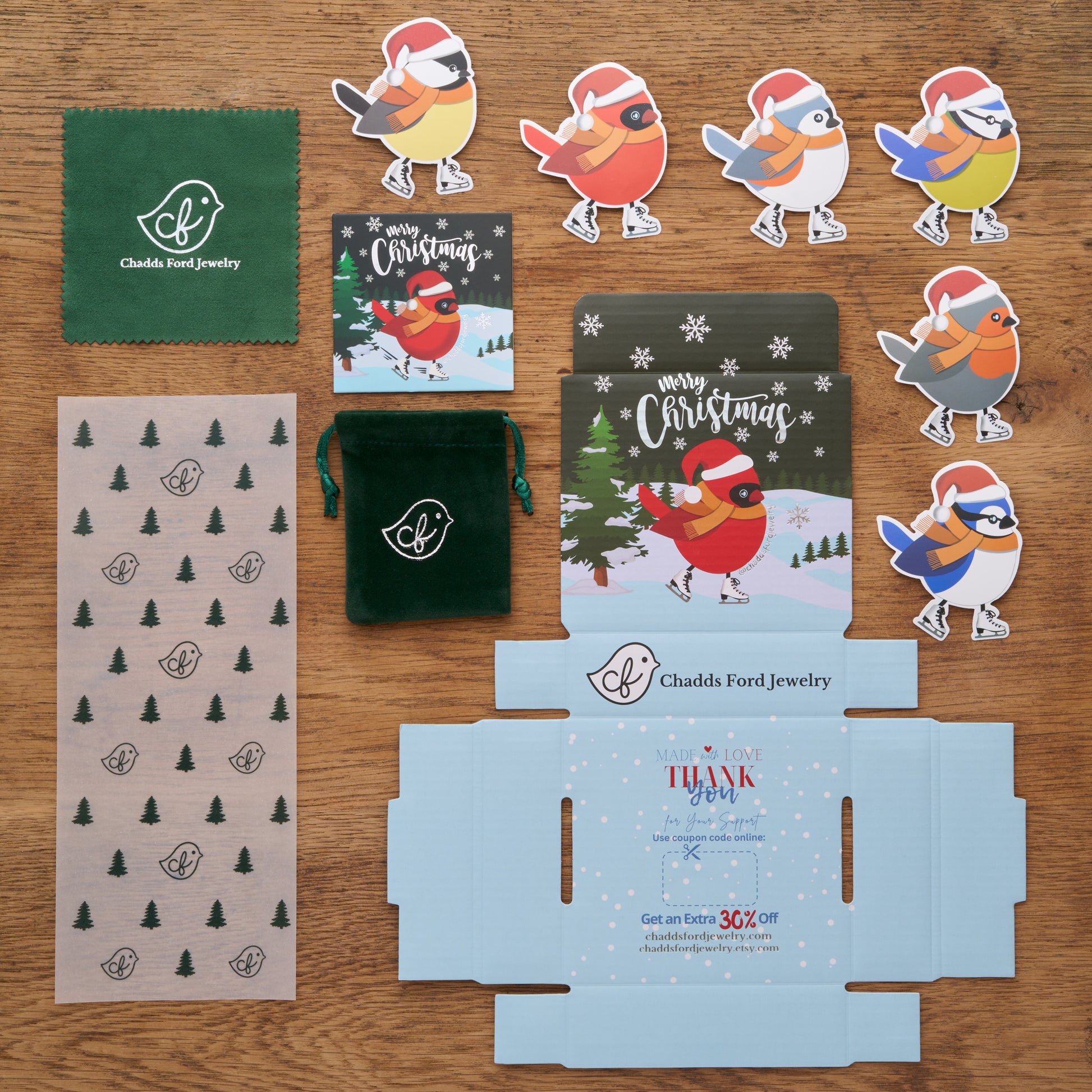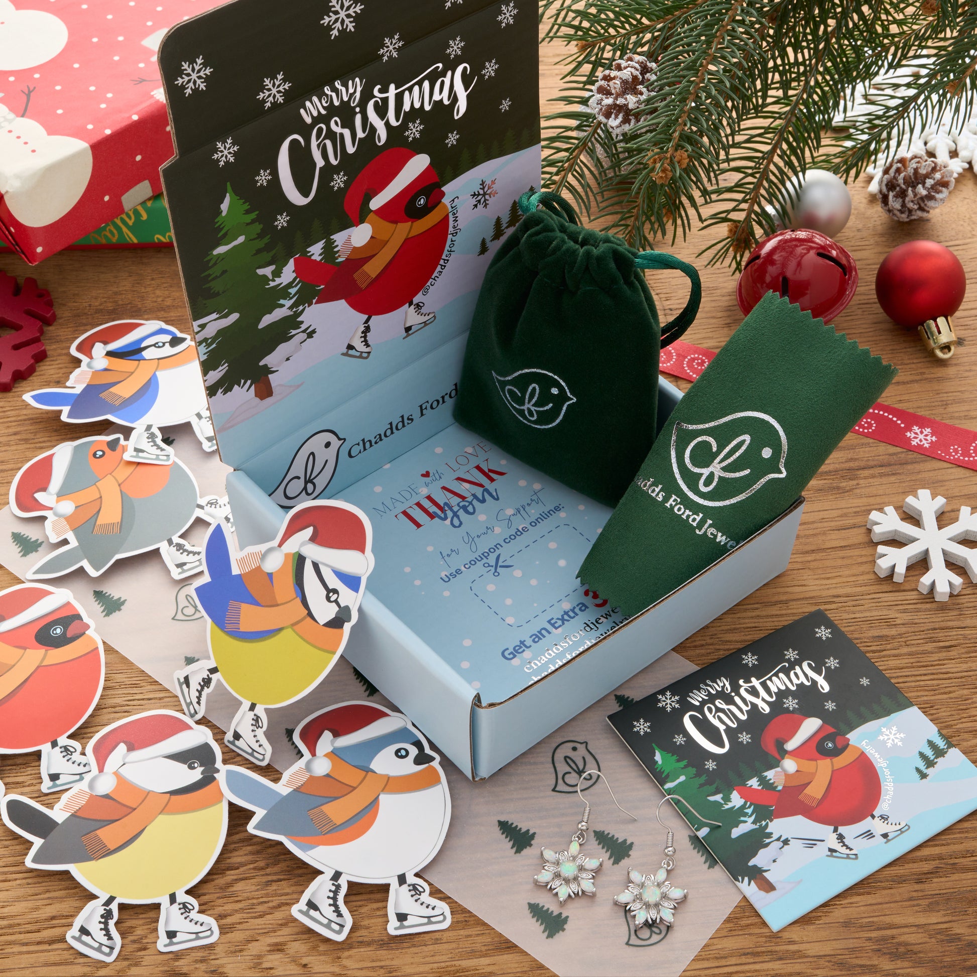 This holiday season, we are offering an upgraded pack out for only $5.95! Recipients will receive a beautiful Christmas-themed box in addition to the regular goodies which we include with each order (seasonal stickers, a limited edition green velvet jewelry bag, and a green jewelry cloth)!