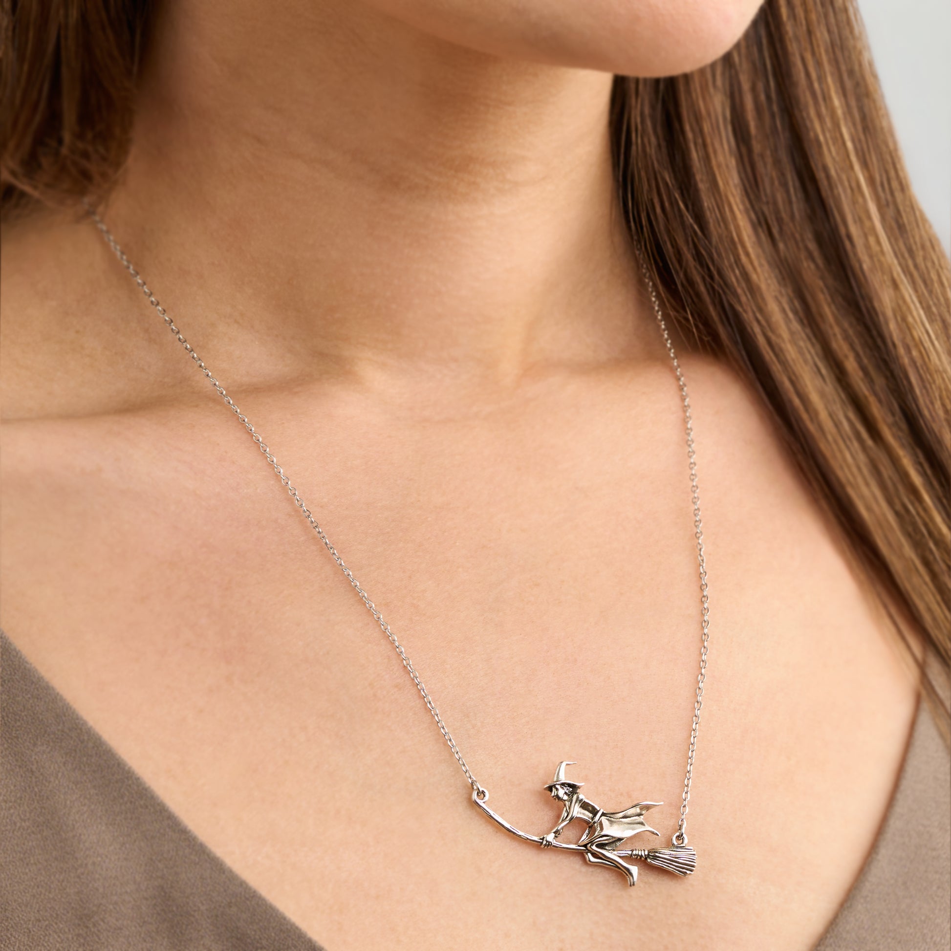 Elegant and refined, the Vintage Flying Witch Necklace brings a mystical, seasonal touch to any look—perfect for celebrating the magic of autumn nights and Halloween charm.