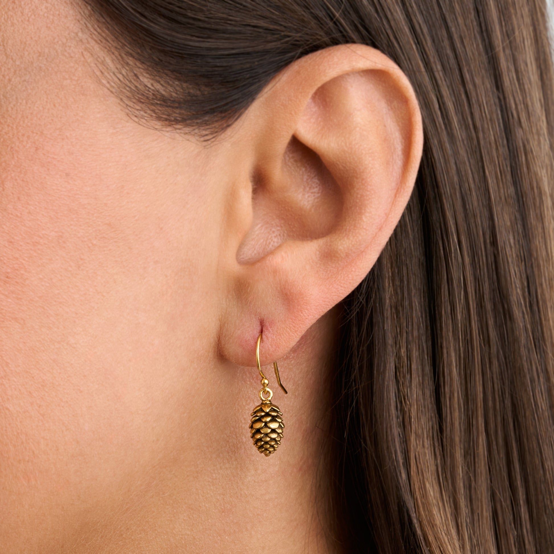Stunning and refined, the Vintage Gold Pine Cone Earrings with French Hooks elegantly capture the spirit of the great outdoors.