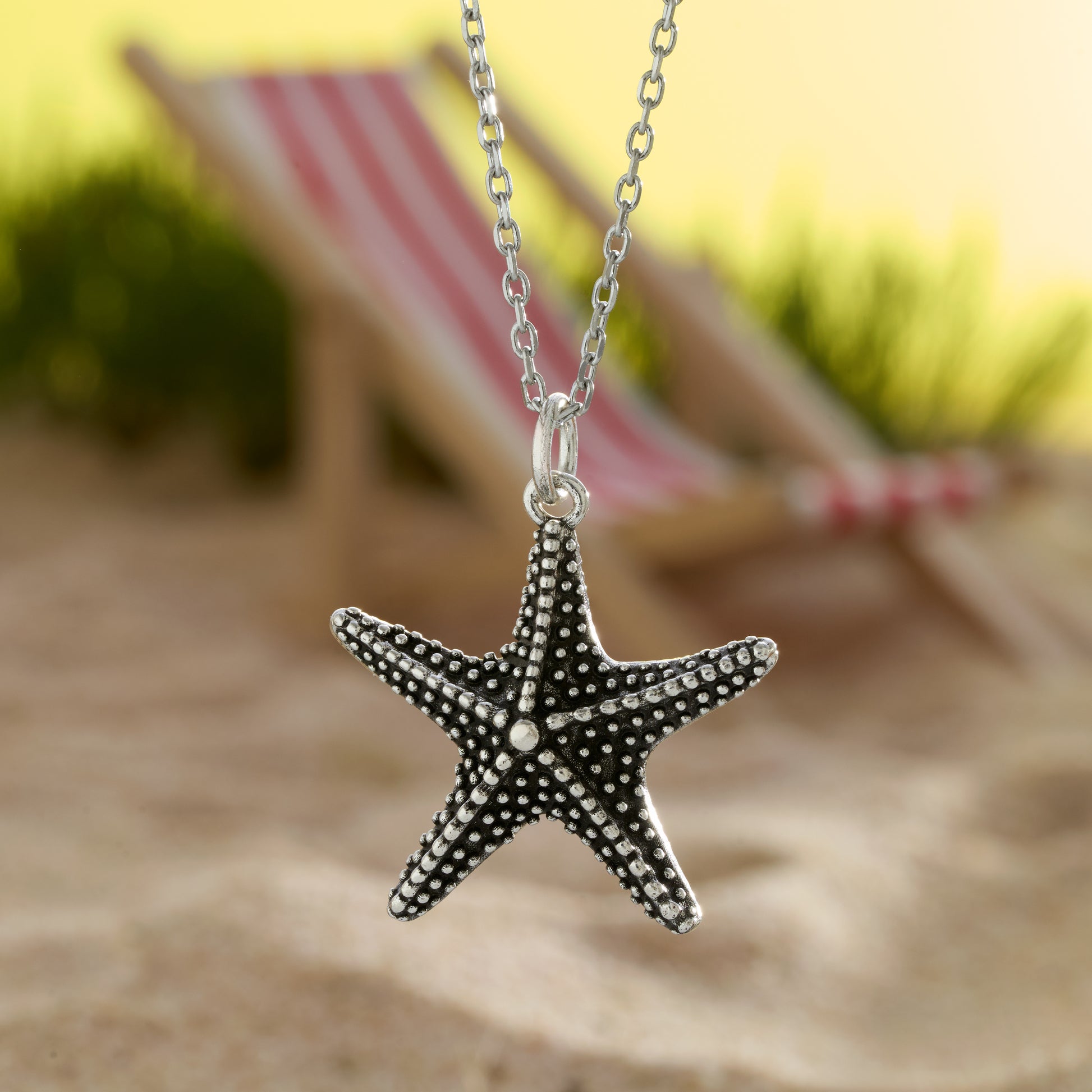 Handcrafted from brass and finished in vintage silver plating, this set includes a matching starfish necklace and leverback earrings, each featuring softly textured detail and organic contours. The necklace pendant (24mm x 24mm) offers relaxed yet refined presence and hangs from an 18" stainless steel chain with a 2" extender for durable, adjustable styling. The coordinating earrings (20mm x 20mm) are suspended from hypoallergenic surgical stainless steel leverback hooks, providing secure, lightweight comfort for everyday wear. The vintage finish adds a softly aged look that enhances its seaside character.